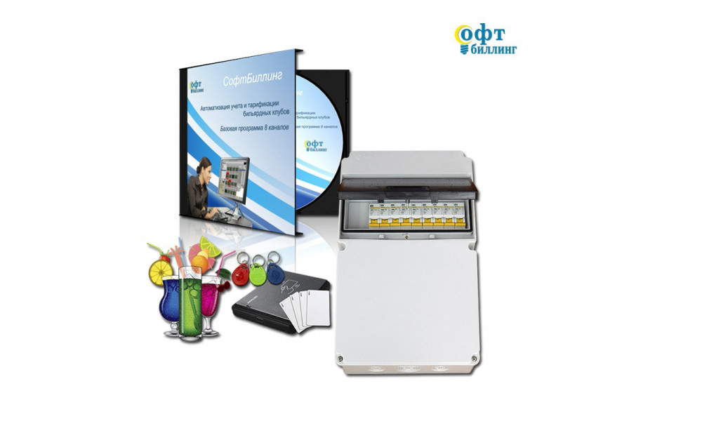 Расширенный комплект ХардСмарт 8 состоит из платы управления и программы для автоматизации учета игрового времени в бильярдных до 8-ми столов. Программное обеспечение содержит опцию "Дисконт". Комплект ХардСмарт укомплектован боксом для автоматов "Бокс 8" с разводкой на одну фазу, обеспечивающий защиту платы управления от перегрузок и коротких замыканий, также позволяющий управлять столами в аварийном режиме в случае поломки компьютера или выхода из строй платы управления. В комплекте включена опция "Бар" позволяющая вести учет движения товаров по бару и кухне, а так же позволит отказаться от сторонних дополнительных программ что доставляет неудобства обслуживающему персоналу.